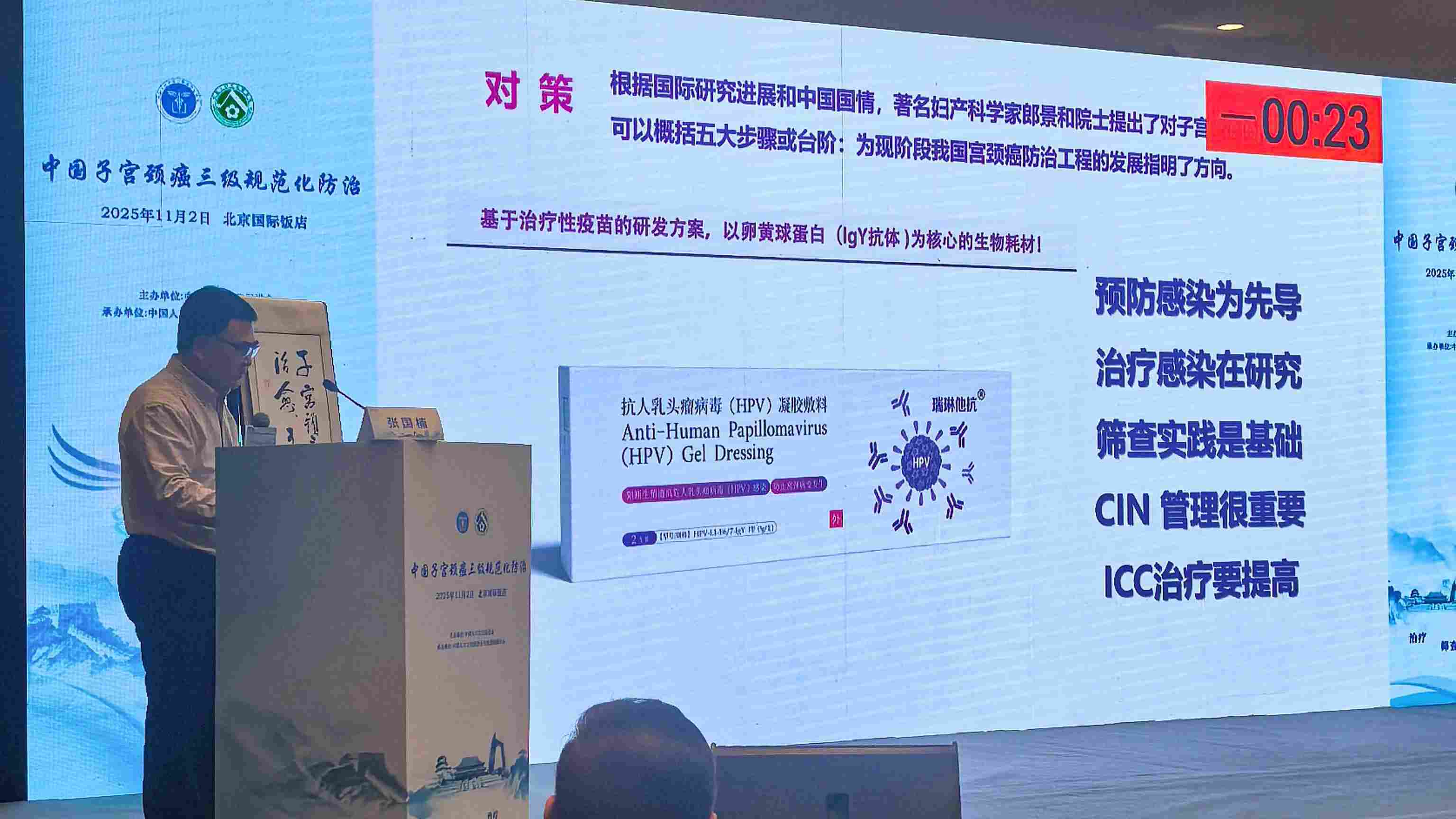 瑞琳他抗作为临床无创干预的治疗手段,早在2023年《蓝皮书》发布时便以“高危HPV靶向清除方案”亮相大会。瑞琳他抗通过凝胶推注形式精准作用于宫颈局部,通过“抗体鸡尾酒疗法”,直接抑制病毒活性,阻断病毒整合,清除游离病毒,协同治疗妇科炎症。多管齐下,为一级预防(病因预防)和二级预防(癌前病变阻断)提供了无创干预方案。