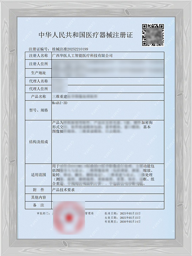 近日,由梵晨博生医药集团旗下广西华医人工智能医疗科技有限公司与中国科学院软件研究所联合研发的“阿梵D-全息医疗影像三维重建与手术规划导航分析软件”(注册证编号:桂械注准20252210199)正式获得国家医疗器械注册认证。产品适用于胸外科、肝胆外科、泌尿外科、神经外科、乳腺外科、胃肠外科、头颈外科、心脏外科、肿瘤科、妇科、骨科、影像科等多学科场景,为复杂手术提供“可视化、精准化、智能化”解决方案。